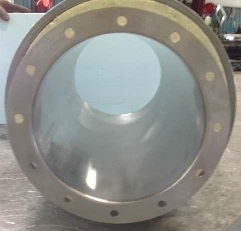 Rigid flanges welded to duct and bolted together. |